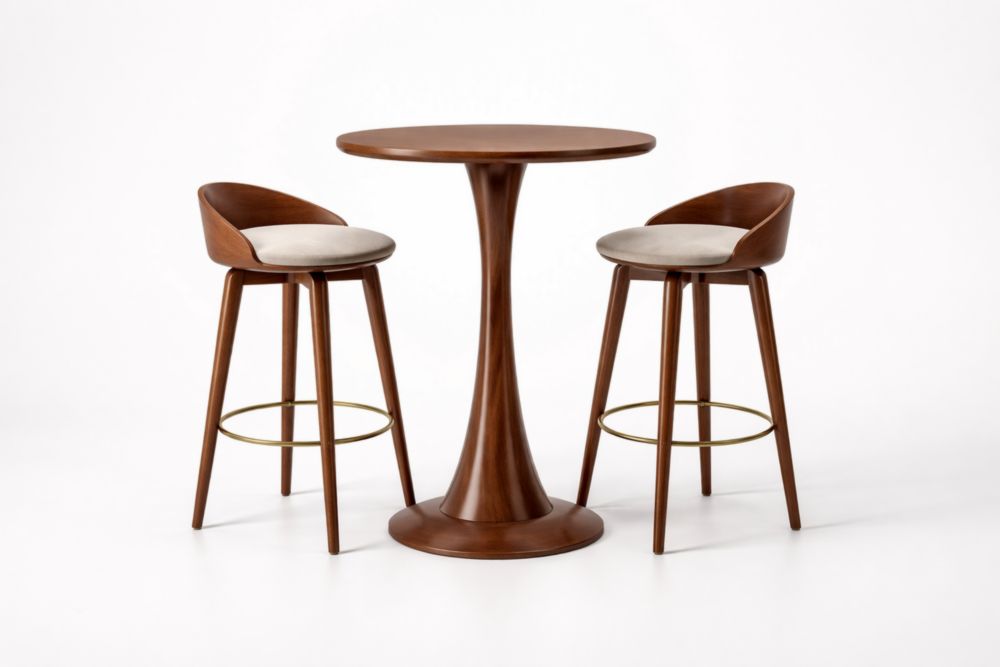 Wood Bar Set with Two Fabric Upholstered Stools